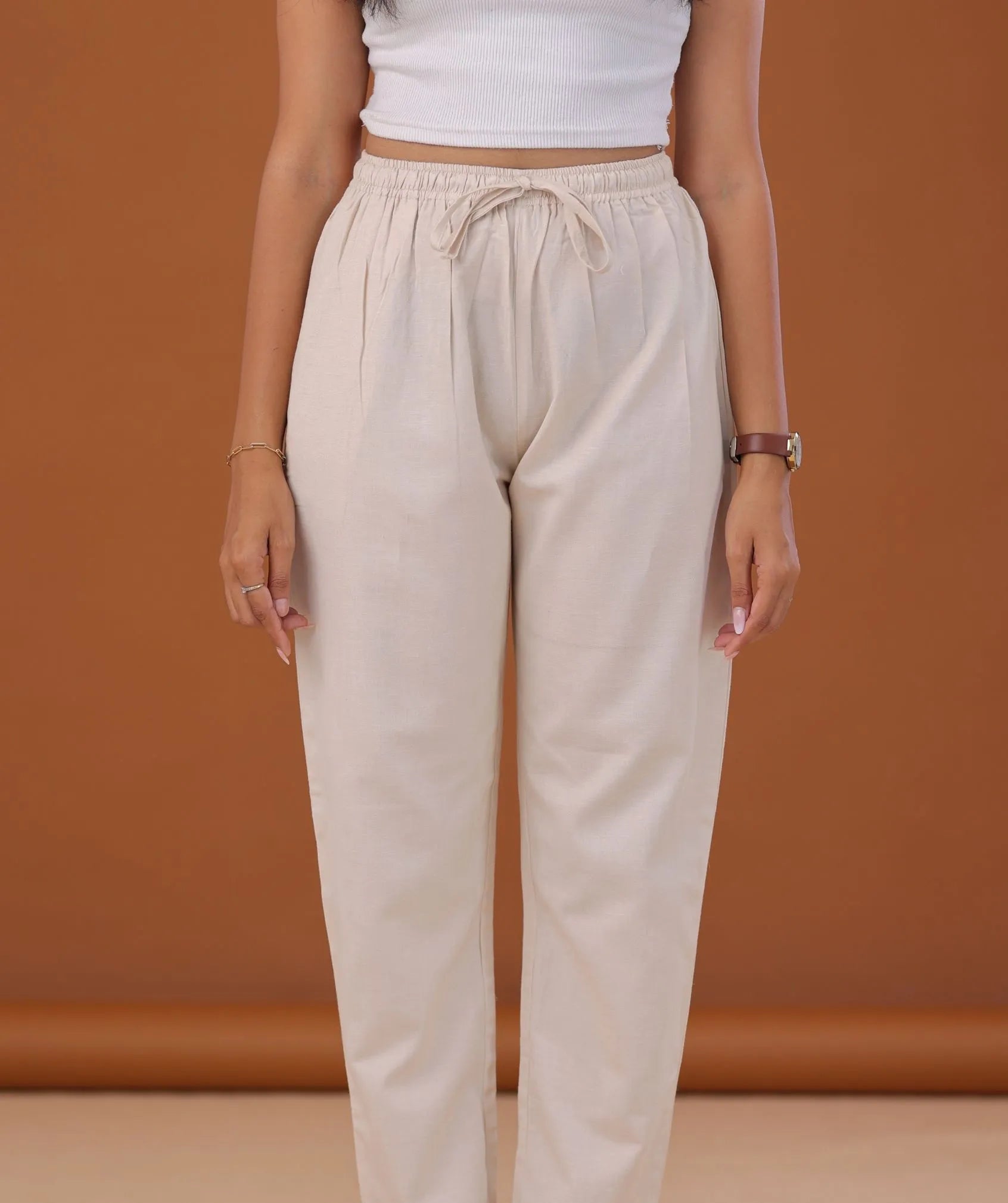 With a soft cream tone that pairs effortlessly with kurtis, tunics, and tops, this bottom is a versatile wardrobe essential. Free from lining, it maintains an airy, natural drape suited for warm weather. Easy to style and comfortable for all-day wear, this ready-to-wear bottom is perfect for relaxed outings, work-from-home looks, or casual day styling.
