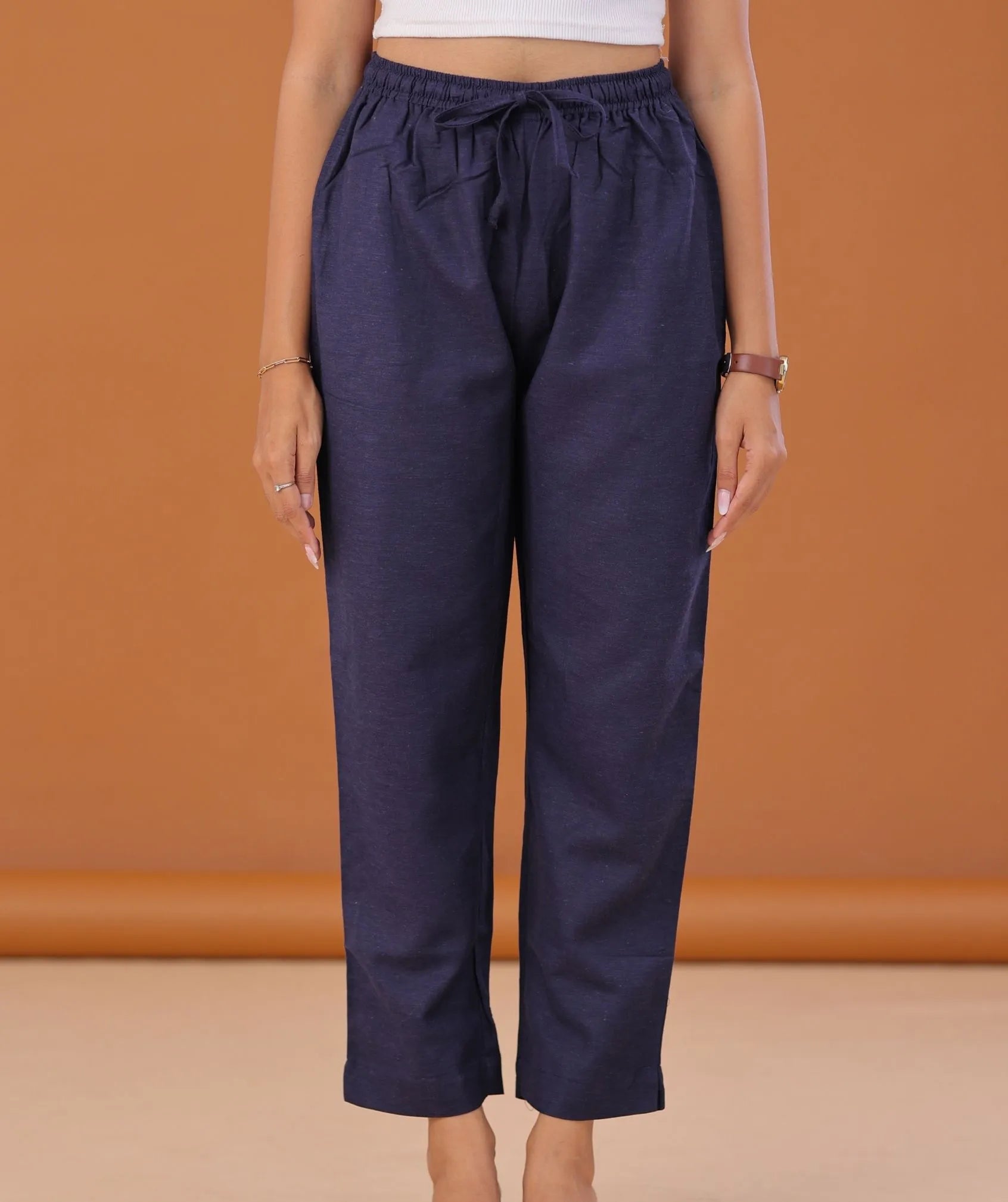 Midnight Blue Linen Cotton Ready-to-Wear Bottom with Pockets