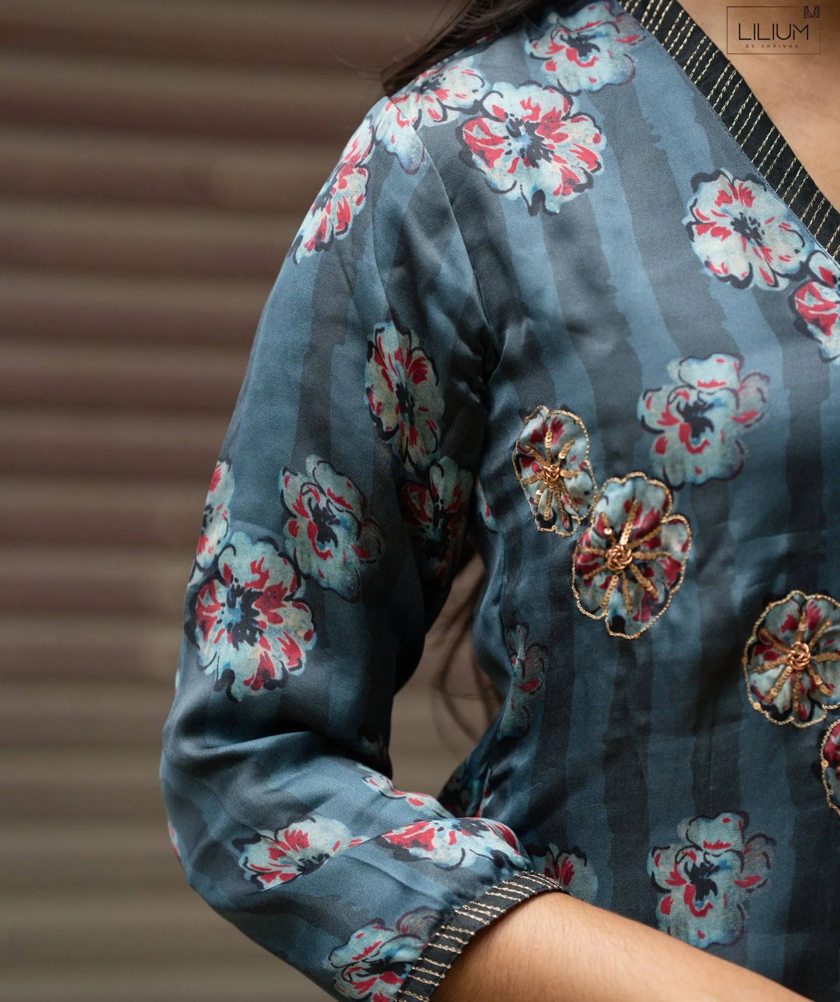 Color: Moonlit Slate Floral with Hand Embroidery