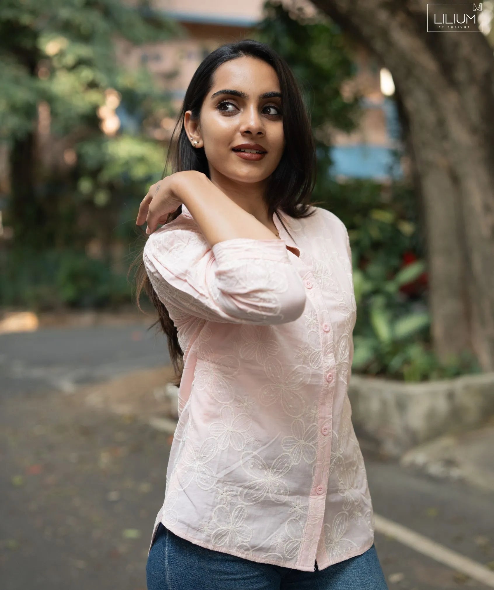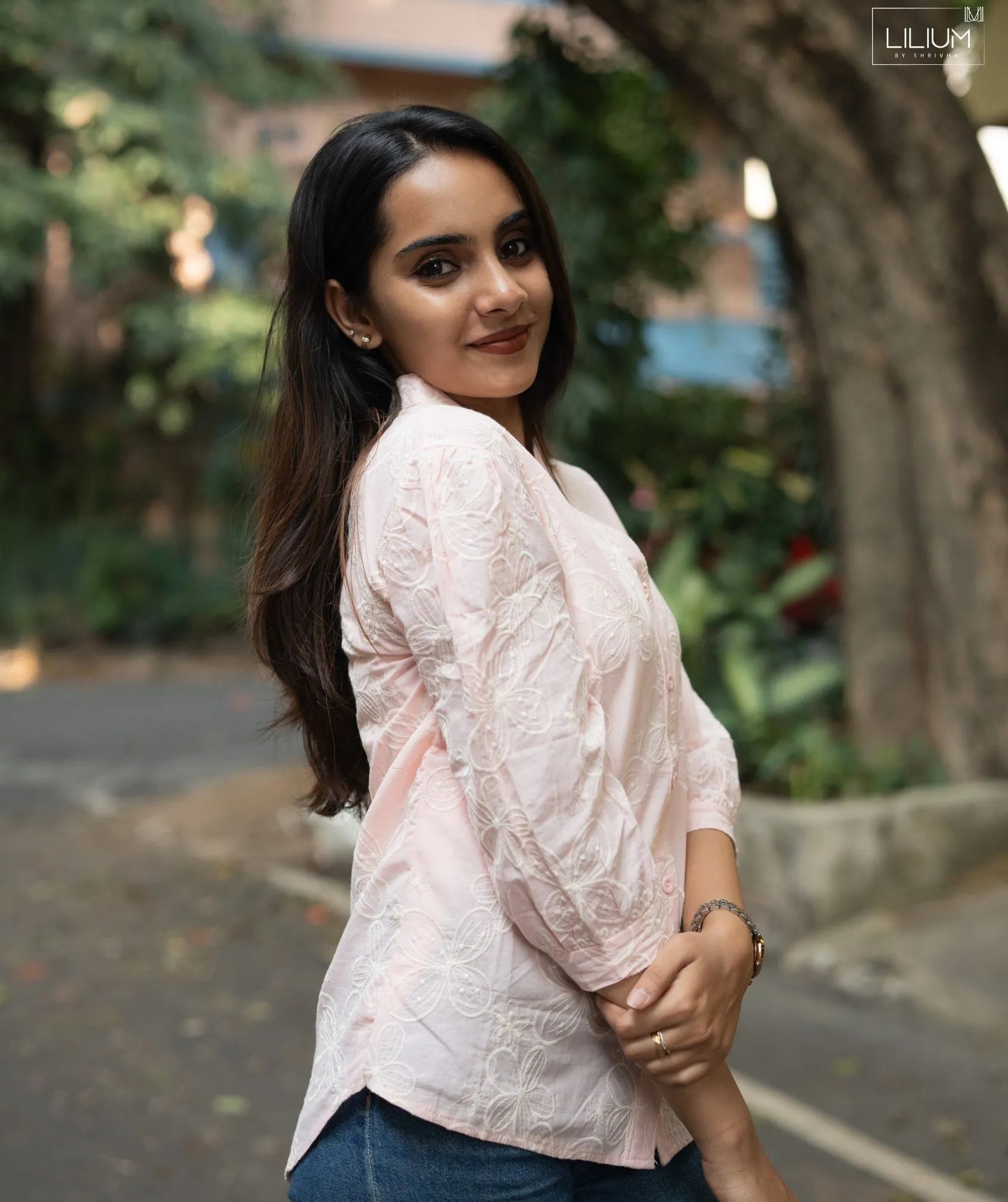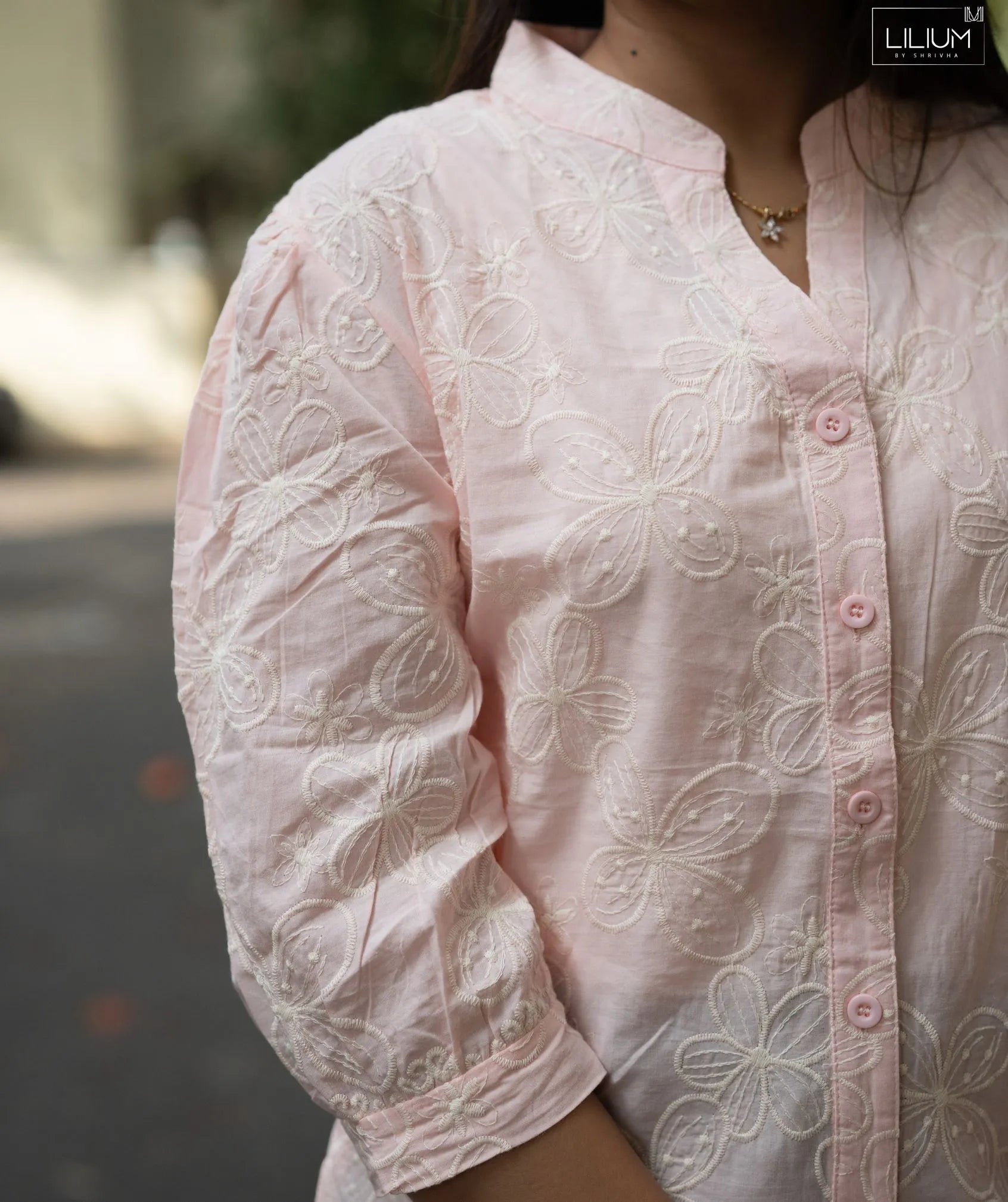Add a touch of effortless charm to your everyday wardrobe with this Petal Whisper Cotton Embroidered Short Top. Crafted from breathable cotton, this top features delicate embroidery that enhances its simple yet elegant appeal. Designed as a short top with a comfortable 26-inch length, it offers ease of movement and a relaxed fit suitable for casual wear.