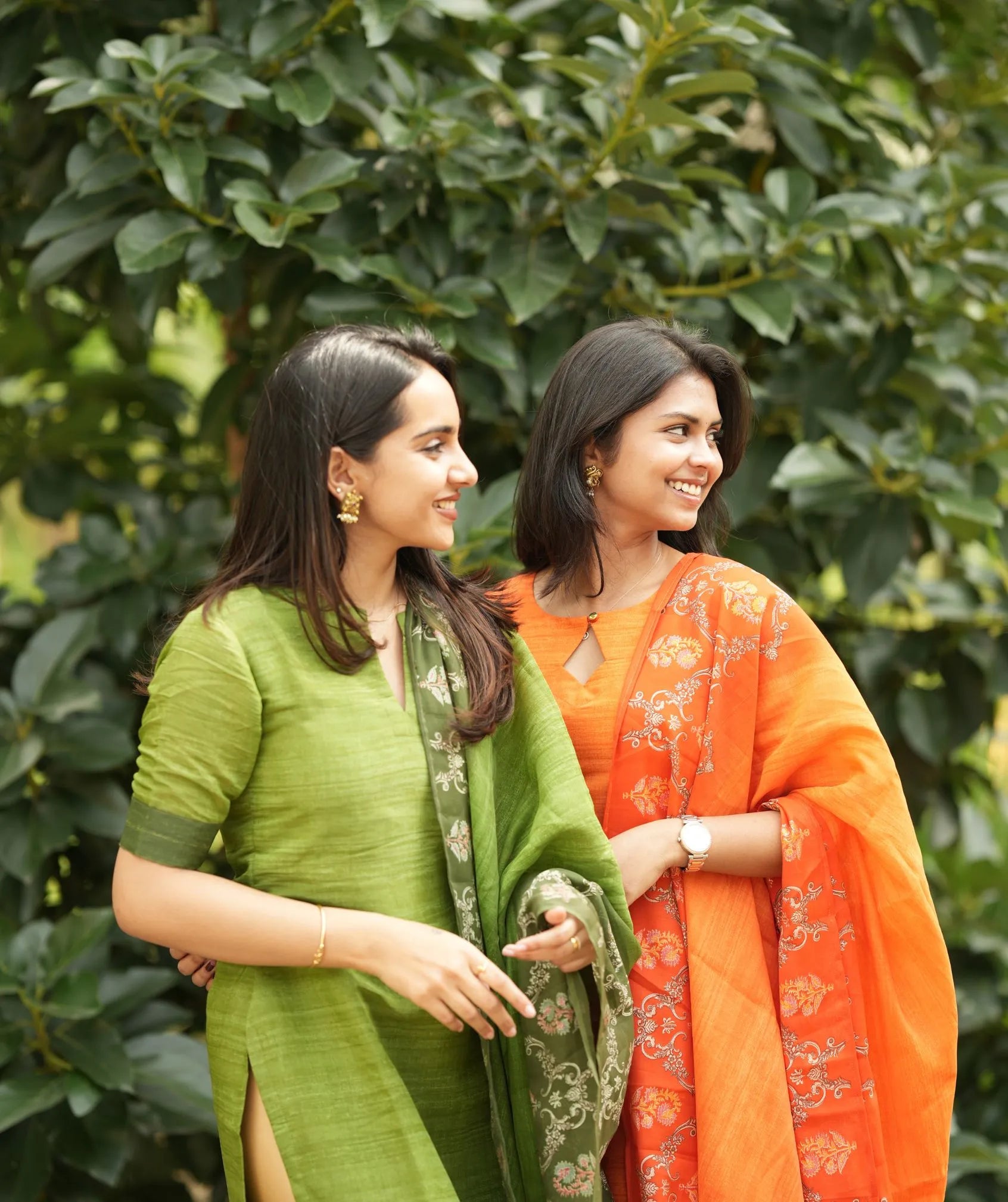 Saffron Glow Chanderi Kurti with Shawl – Casual Chic