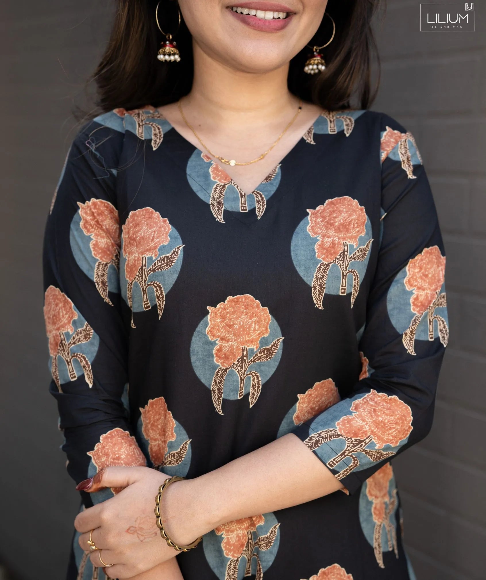 Perfect for casual wear, this versatile co-ord set works beautifully for daily outings, relaxed gatherings, and day events. The rich Midnight Terracotta Bloom shade adds a distinctive yet wearable charm to your look.