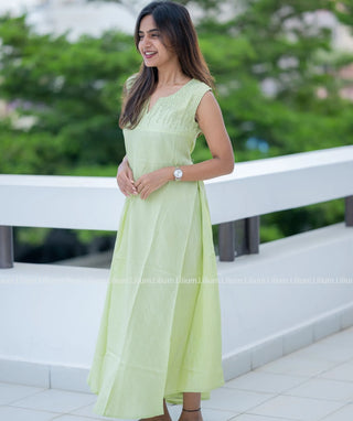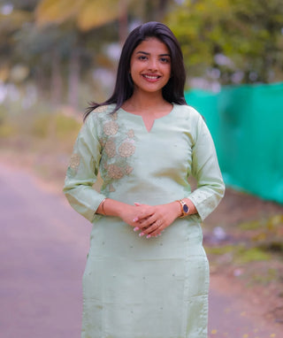 Elegant Light Green A-Line Kurti with Embroidery - Festive Wear