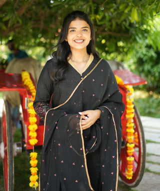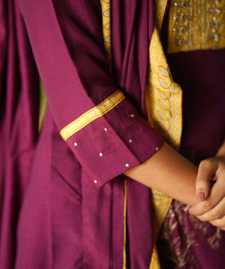 Elegant Wine Embroidered Festive 3-Piece Set with Shawl